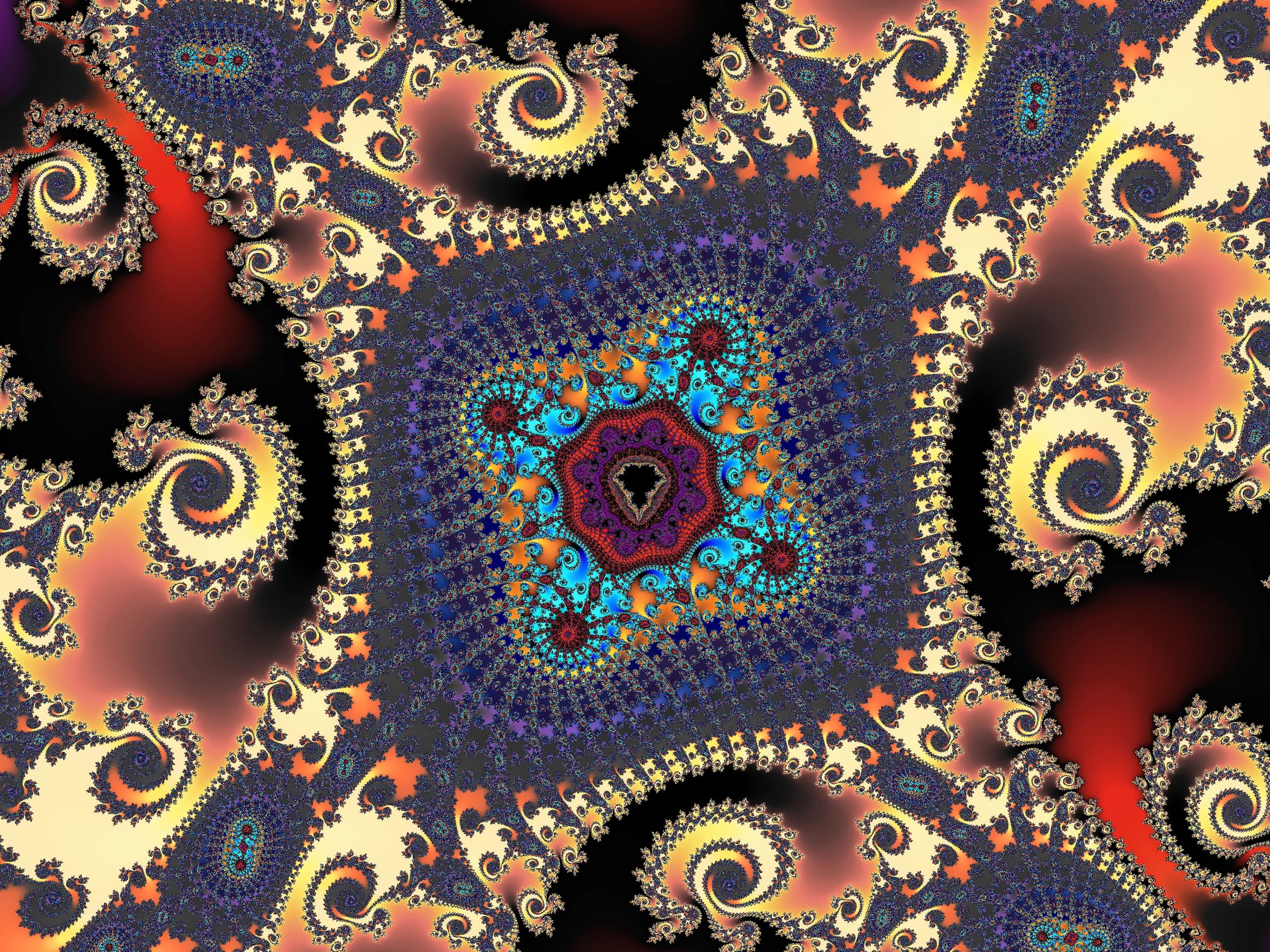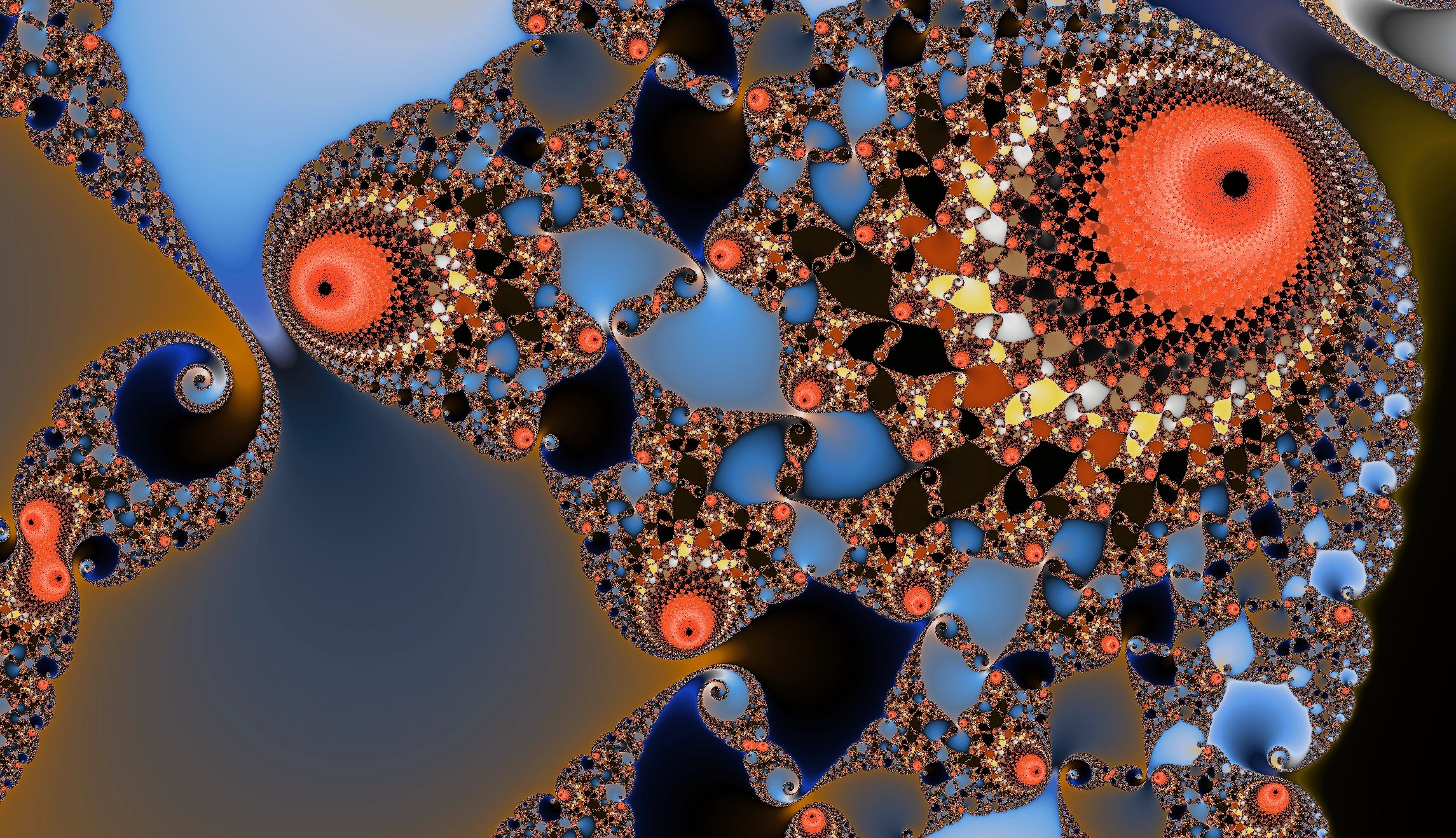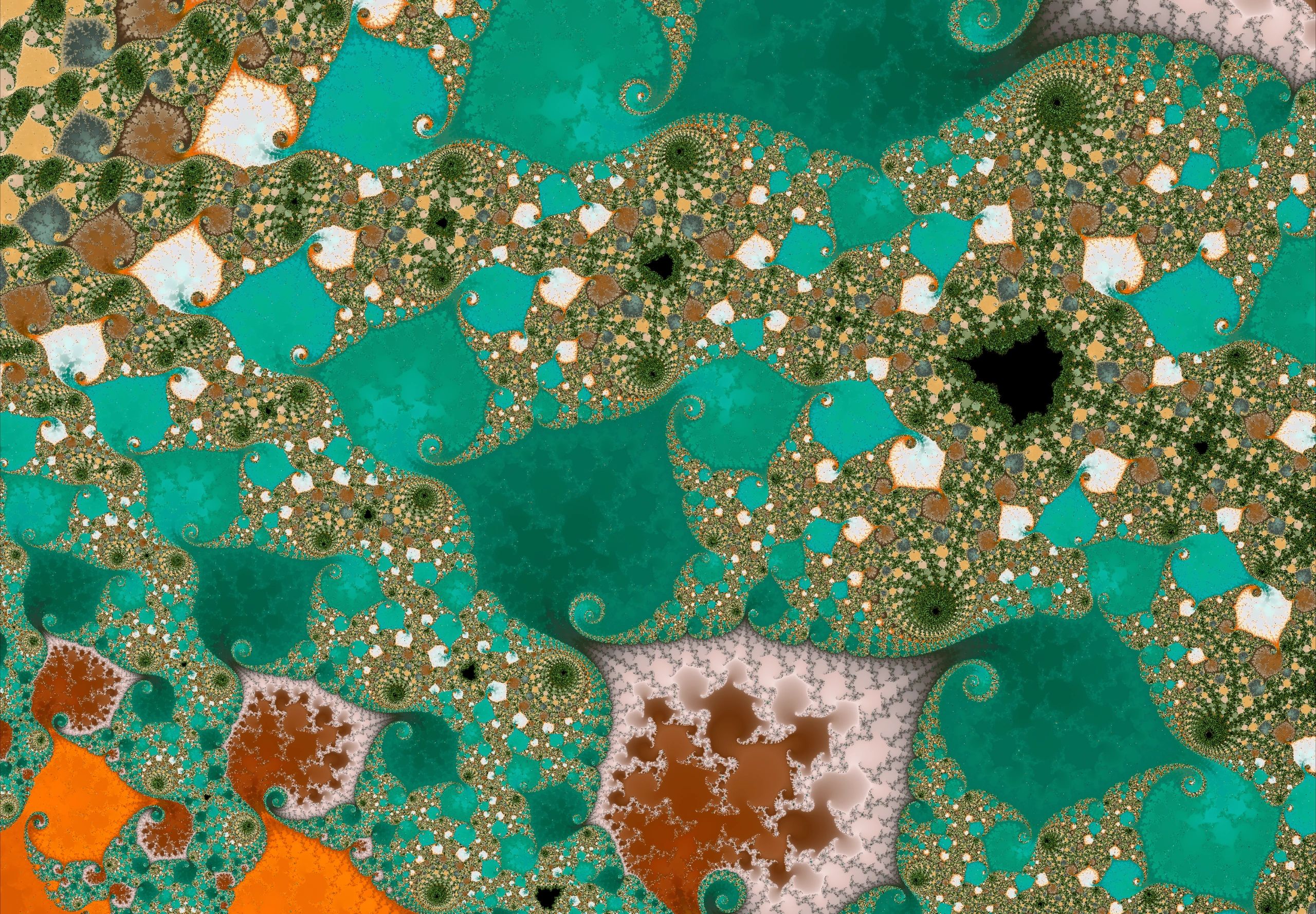 The Mandelbrot set is one of the most famous images in mathematics and serves as a cornerstone of fractal art. It resembles a black heart-shaped figure surrounded by endless spirals and intricate patterns. What makes the Mandelbrot set special is that it’s generated from an incredibly simple formula, yet it reveals infinite detail upon fractal exploration. Zoom in anywhere on its edge, and new shapes emerge—spirals, lightning-like branches, and even miniature ‘baby’ Mandelbrots. This never-ending complexity exemplifies how generative art can stem from simple rules, showcasing an infinite variety that has made the Mandelbrot set a symbol of both mathematics and beauty.