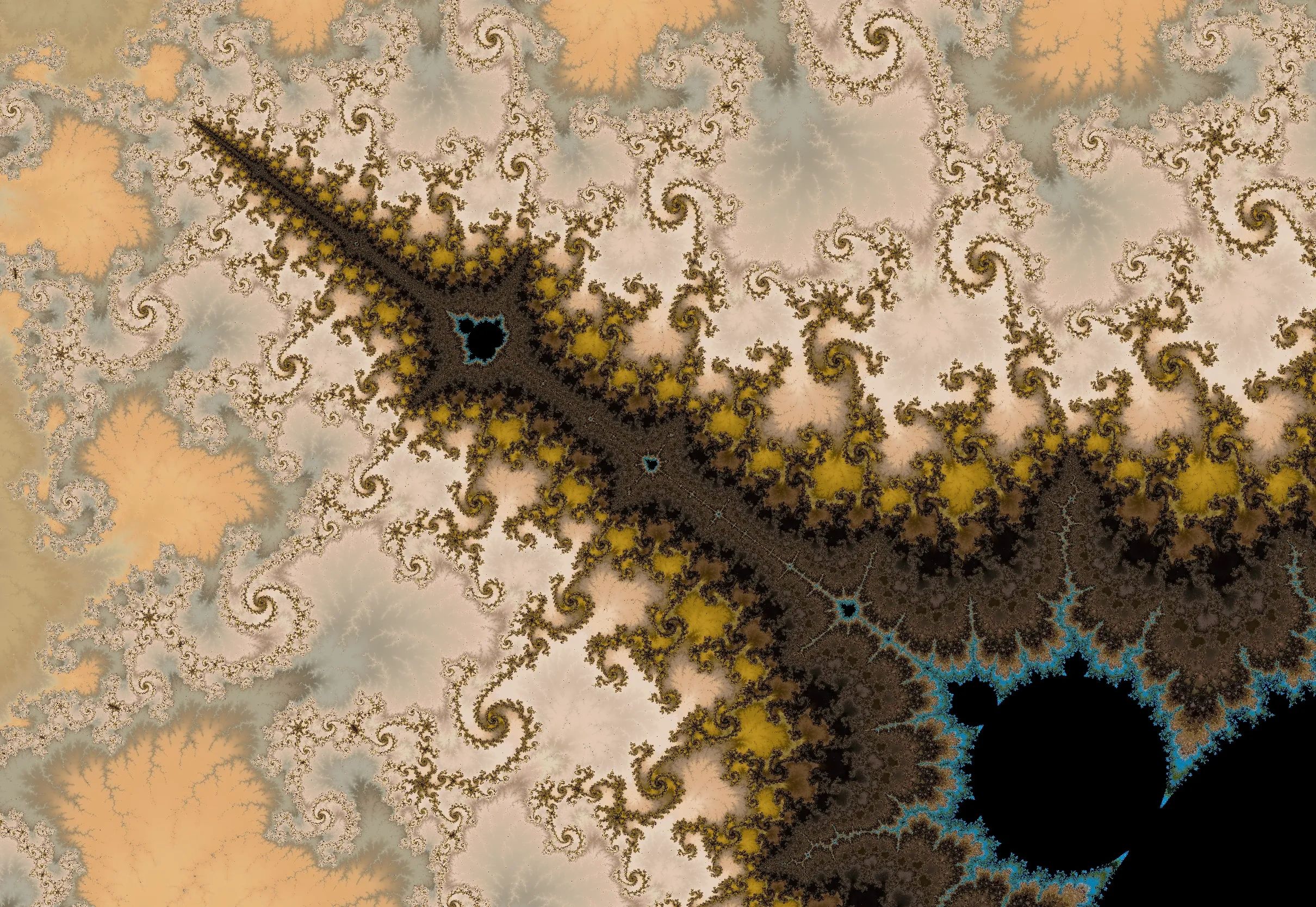 The Mandelbrot set is one of the most famous images in mathematics and serves as a cornerstone of fractal art. It resembles a black heart-shaped figure surrounded by endless spirals and intricate patterns. What makes the Mandelbrot set special is that it’s generated from an incredibly simple formula, yet it reveals infinite detail upon fractal exploration. Zoom in anywhere on its edge, and new shapes emerge—spirals, lightning-like branches, and even miniature ‘baby’ Mandelbrots. This never-ending complexity exemplifies how generative art can stem from simple rules, showcasing an infinite variety that has made the Mandelbrot set a symbol of both mathematics and beauty.